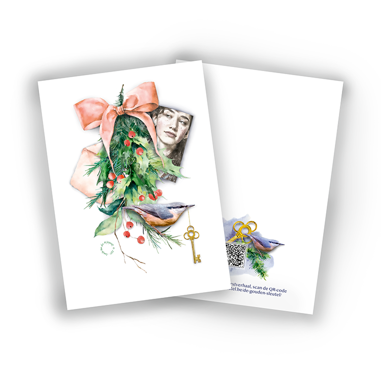 Op de achterzijde ontdek je een uniek detail: een QR-code en link die je meenemen naar het bijbehorende, prachtig geïllustreerde kerstverhaal. Met deze kaarten stuur je niet alleen kerstwensen, maar ook een klein geschenk.